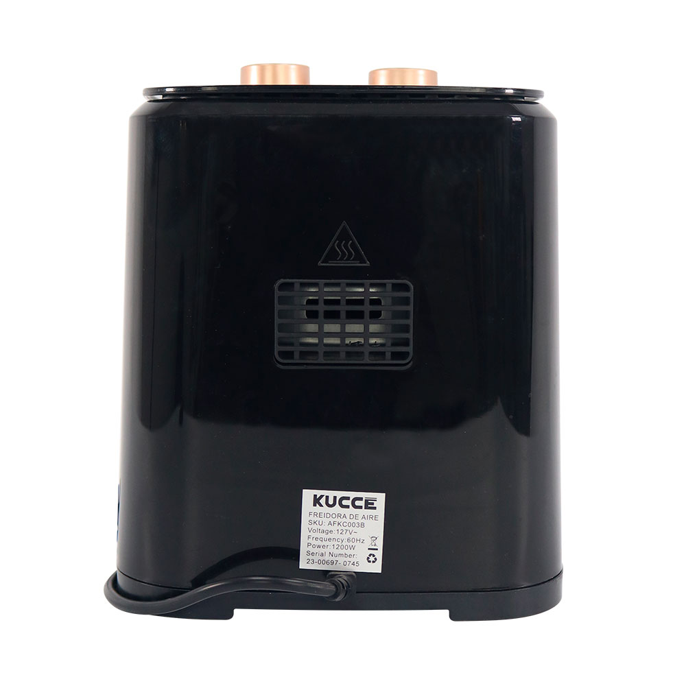 Sencilla, elegante y práctica. Esta freidora de aire de 4.5L y 1200W combina un diseño moderno con la potencia ideal para cocinar de forma rápida y saludable. Su capacidad es perfecta para preparar porciones generosas con menos grasa y más sabor, todo con la facilidad de un uso simple y eficiente.